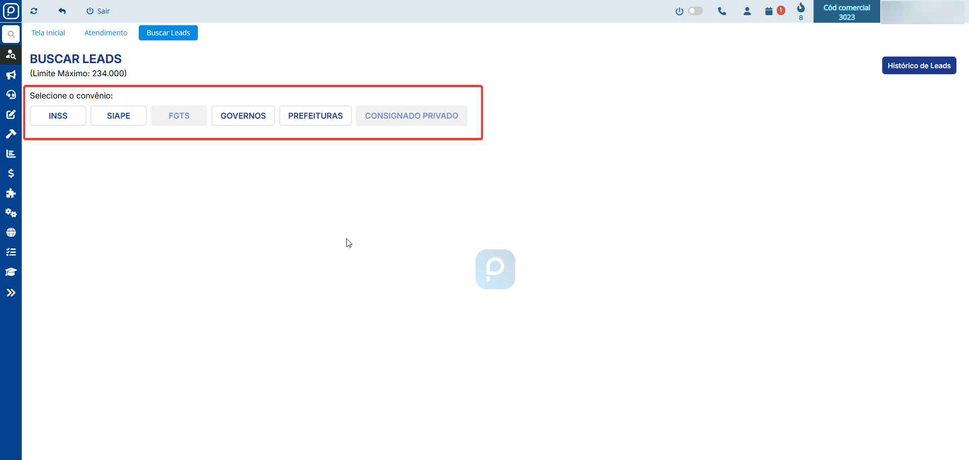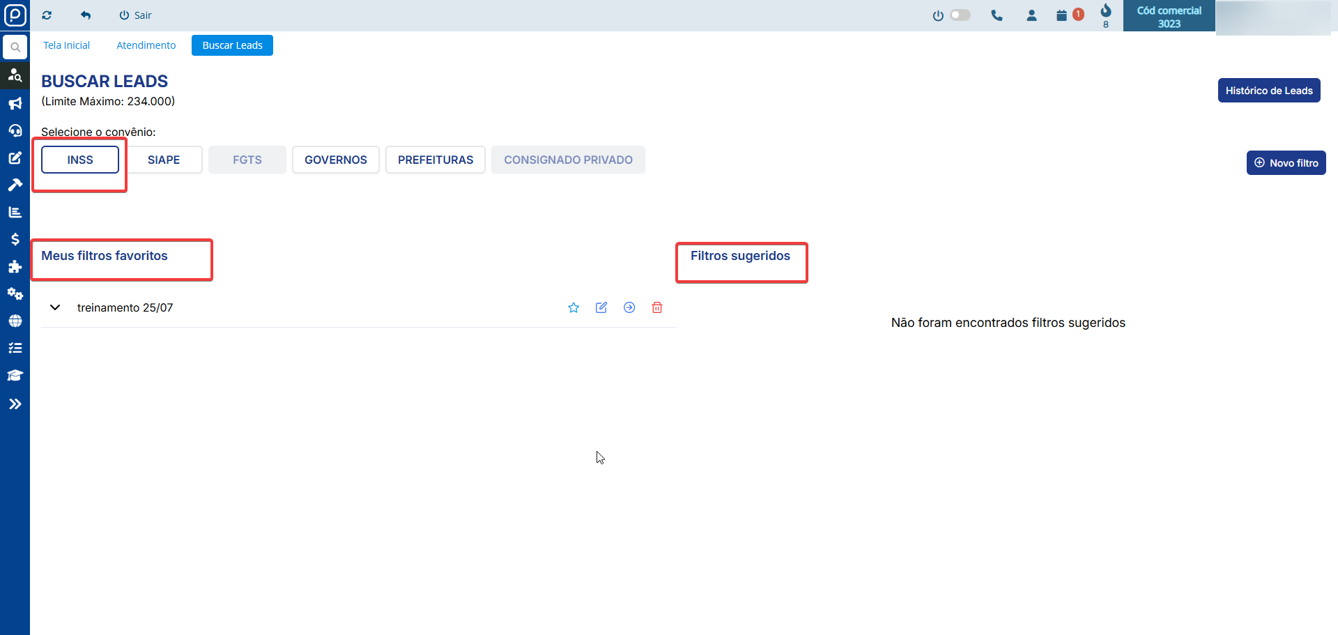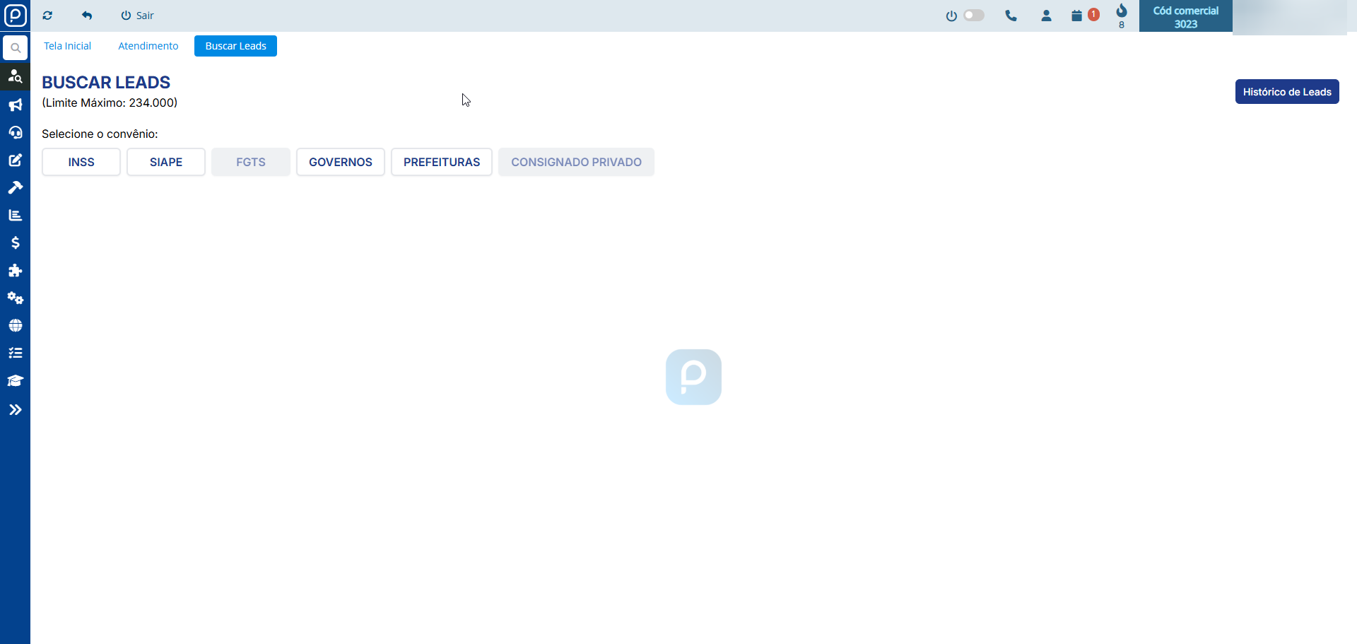 A funcionalidade Buscar Leads (anteriormente “Gerar Leads”) representa uma evolução significativa na forma como você identifica, filtra e seleciona clientes potenciais para suas campanhas de crédito consignado. Com uma interface modernizada e recursos aprimorados, o sistema agora oferece maior agilidade na segmentação de público e na aplicação de filtros personalizados, permitindo que gestores e operadores tomem decisões mais estratégicas e assertivas na construção de suas bases de atendimento.