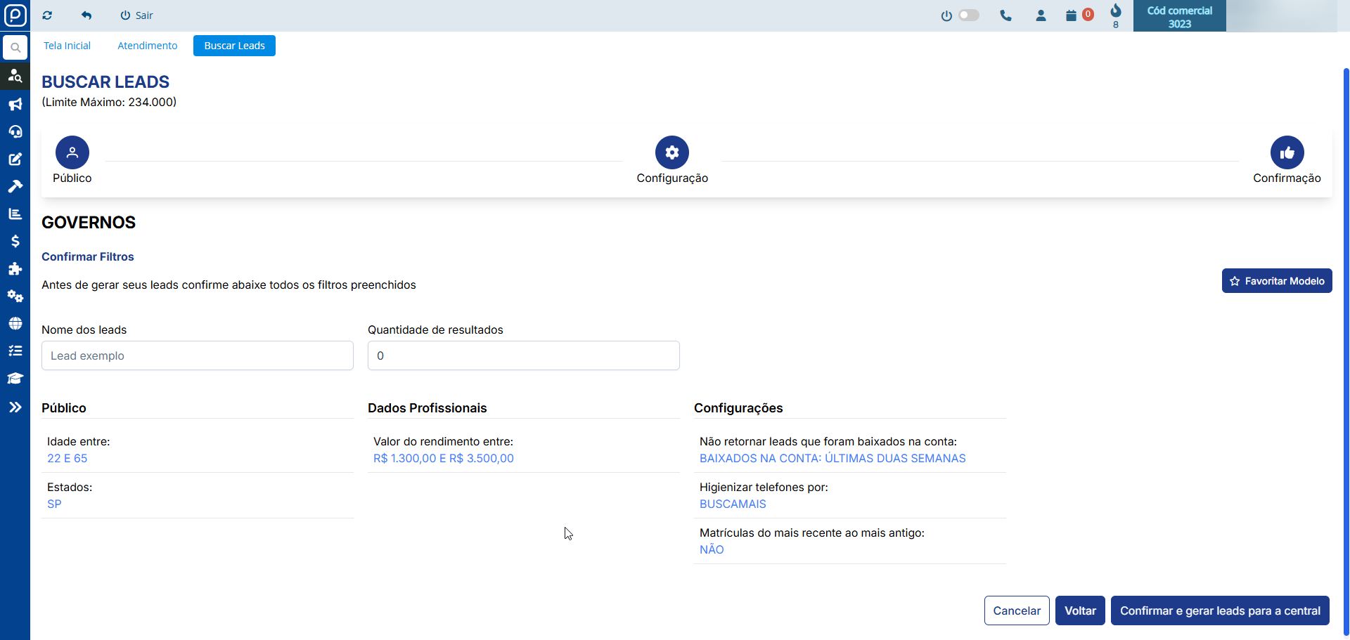 - Você será DIRECIONADO para a tela de confirmação para revisar e finalizar a geração de leads
