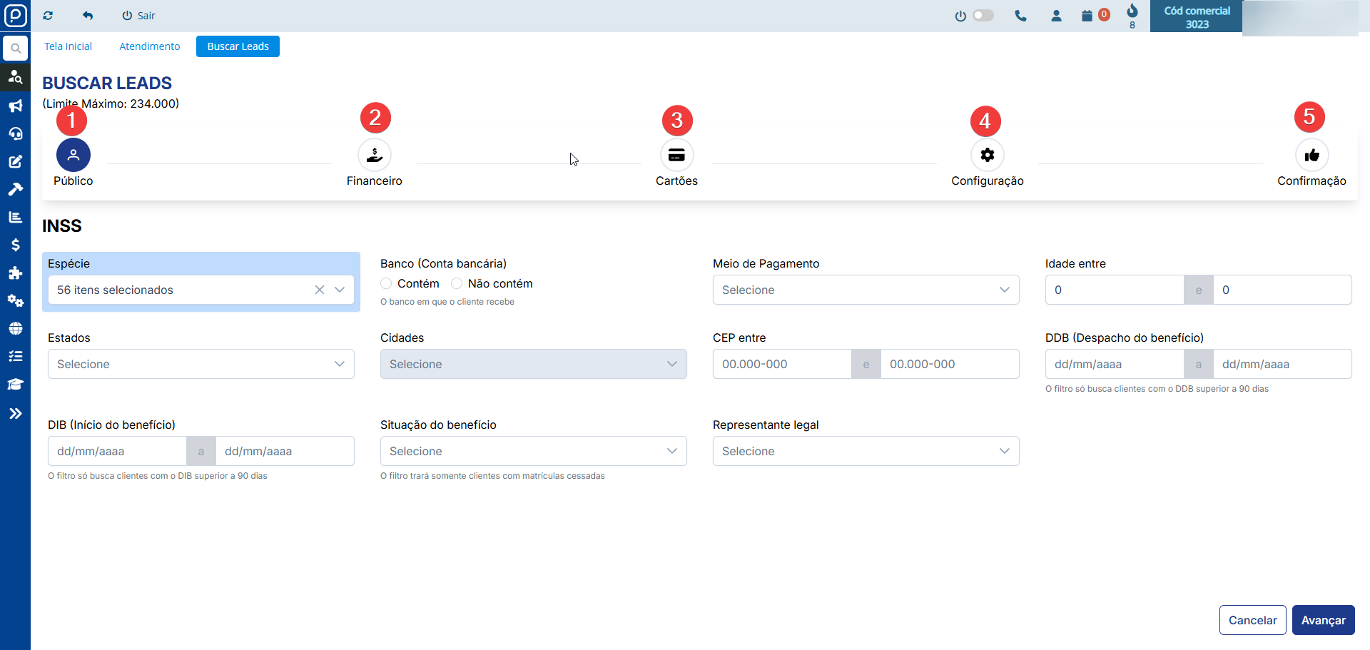 A funcionalidade Buscar Leads tem como principal objetivo facilitar e otimizar o processo de segmentação de clientes, permitindo que correspondentes bancários e promotoras de crédito identifiquem rapidamente os perfis mais adequados para cada tipo de campanha.