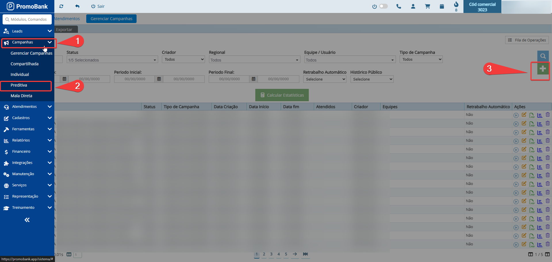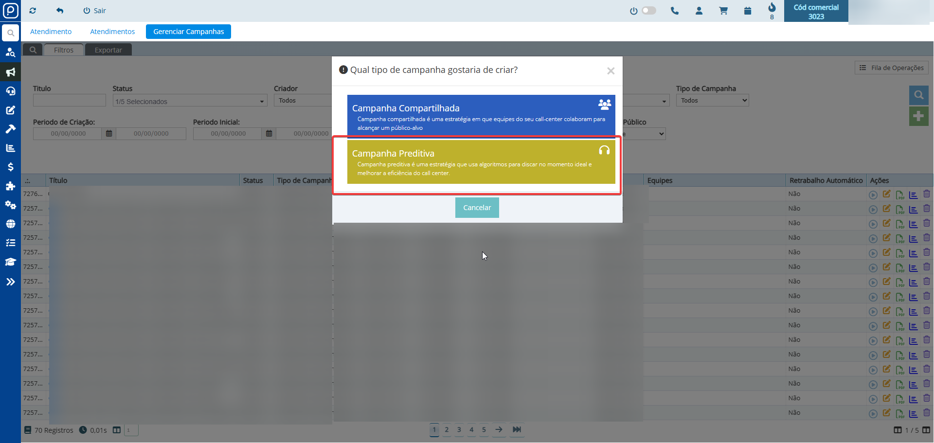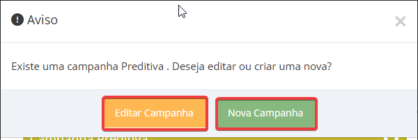 Ao clicar no campo + Campanha preditiva, haverá duas opções, sendo: